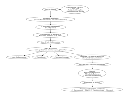 Figure 1: illustrates the mechanistic pathway linking gut dysbiosis to the progression of NAFLD.