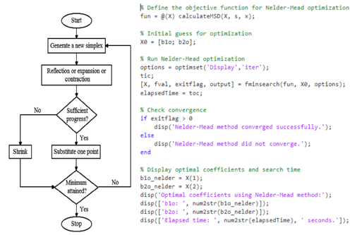 Figure 2: Flowchart of Nelder-Mead simplex algorithm and convergence determination in MATLAB environment