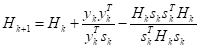 The Hessian matrix update rule Hk for the BFGS method at iteration k is given as: