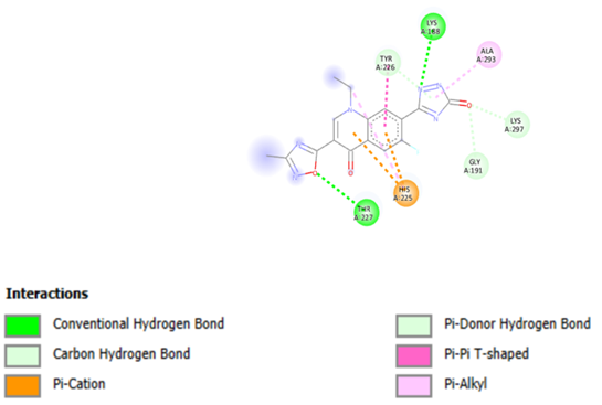 Table 4: Pharmacokinetics properties of the designed derivatives of 7 N pyrrolidine-3-oxadiazole Quinolone.